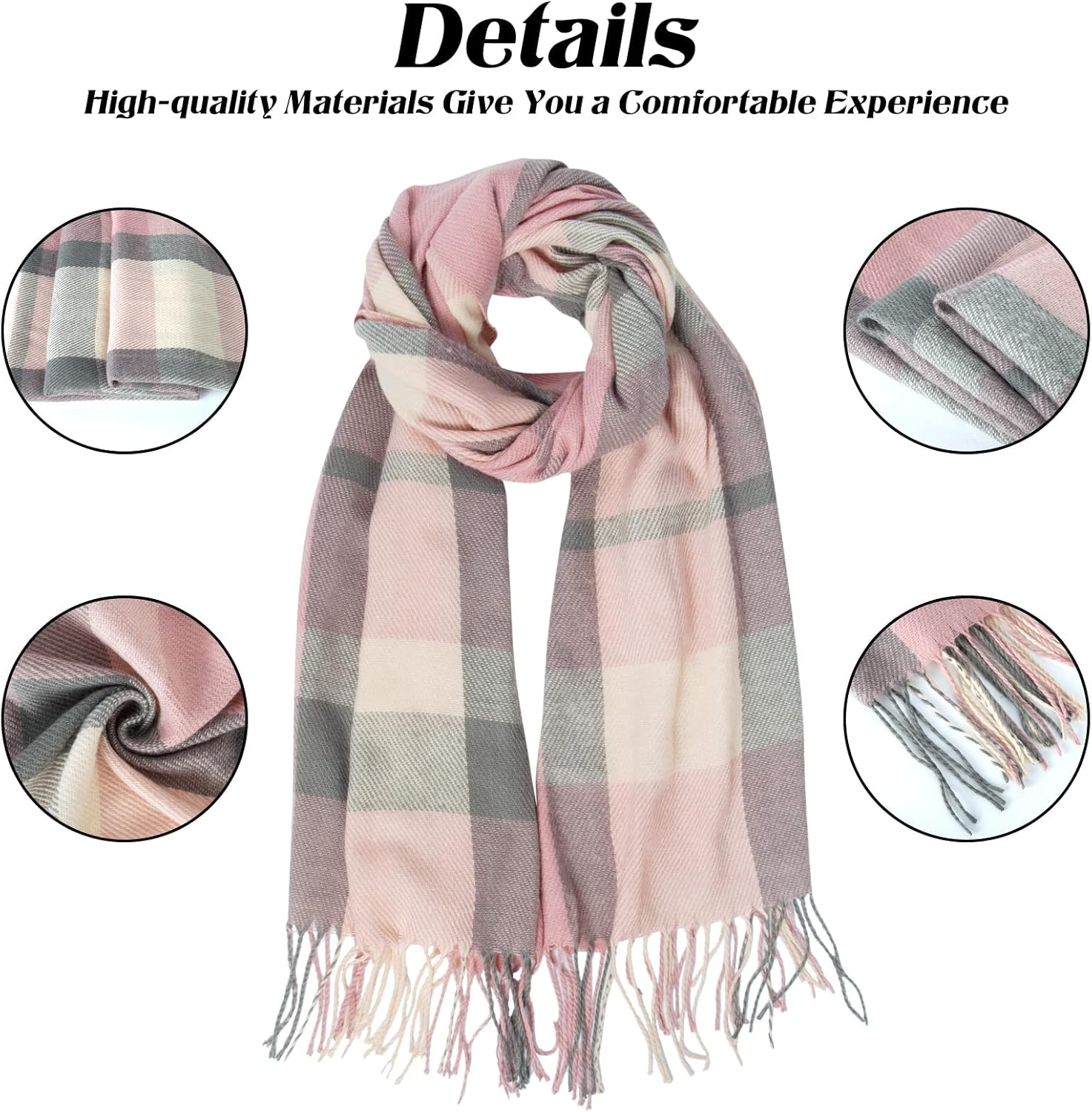 • Scarf Size: The size of this scarf for women is 79 L x 23 W Inches(tassel 4″), this oversized plaid scarf suits many women and girls; Shawl and wraps around outfit and it will keep you warm all day long