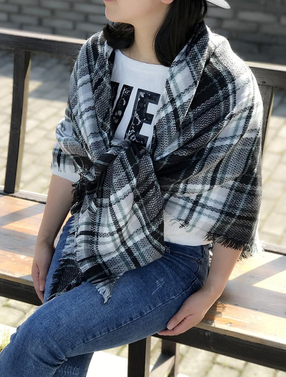 Womens Warm Long Shawl Winter Wraps Large Scarves Knit Cashmere Feel Plaid Triangle Scarf